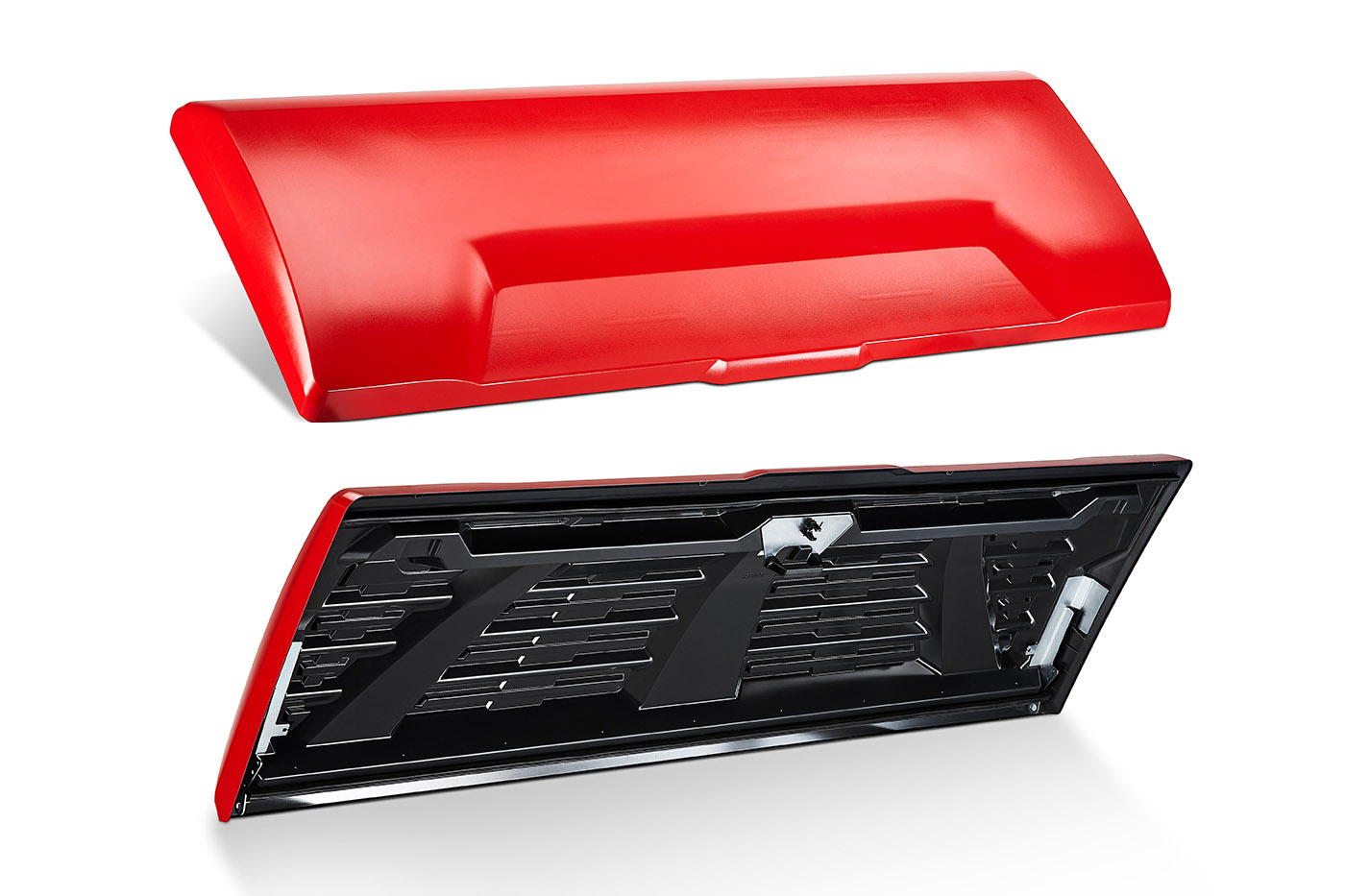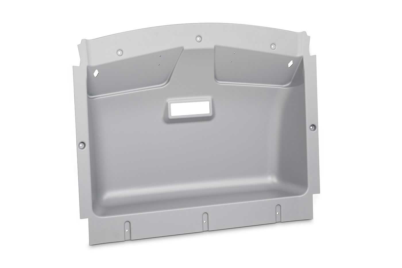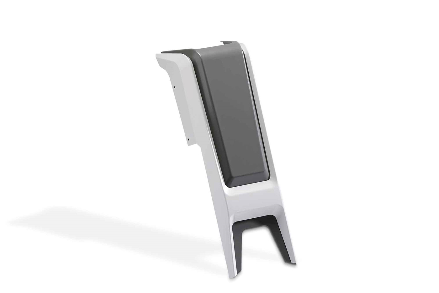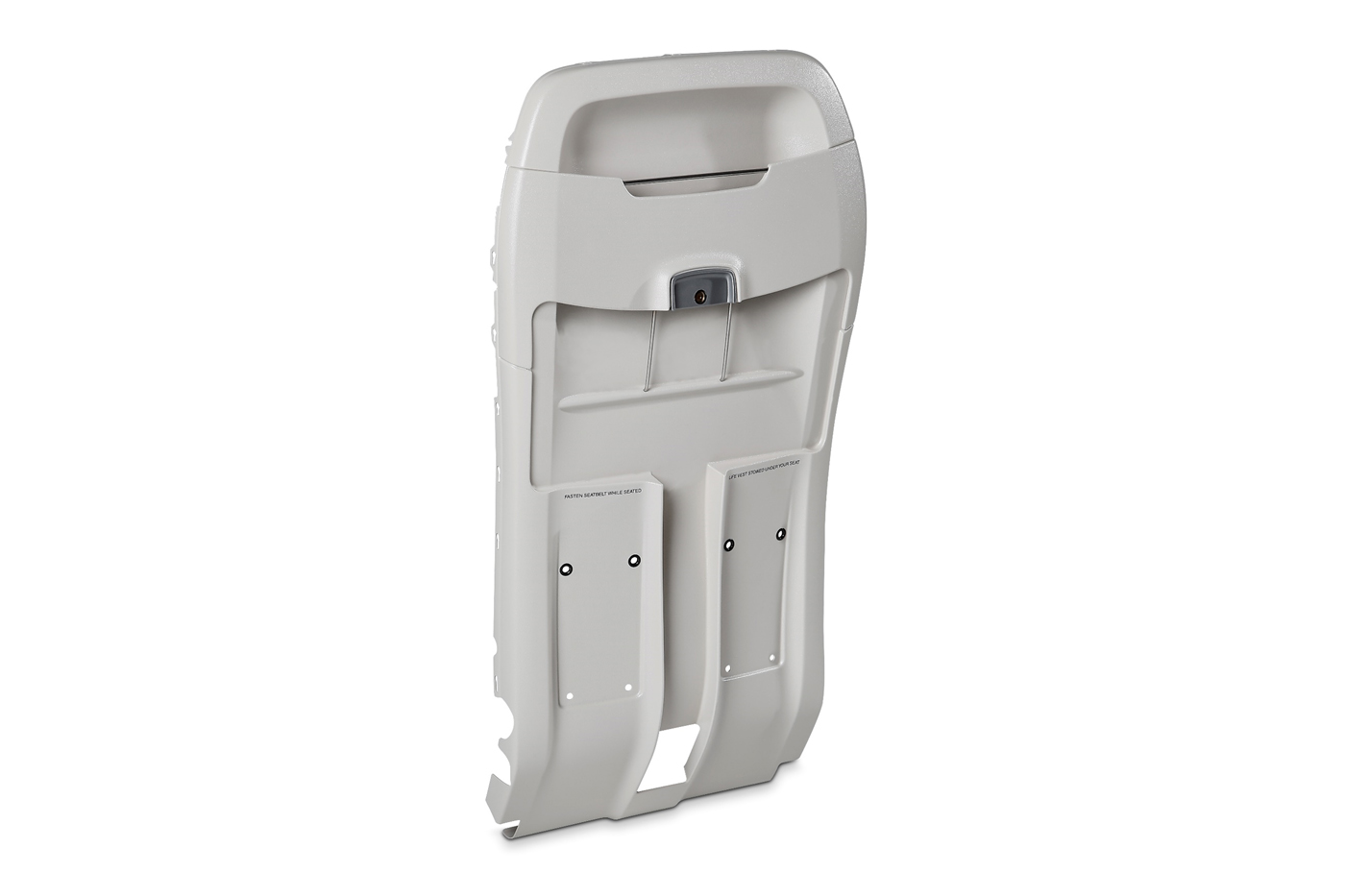 Trim load-through seat for mobile homes, combination of single-sheet and injection moulding