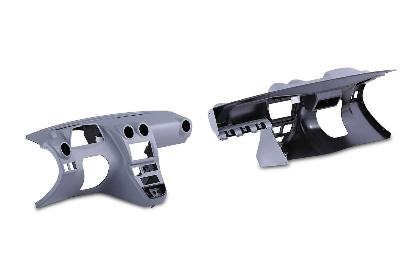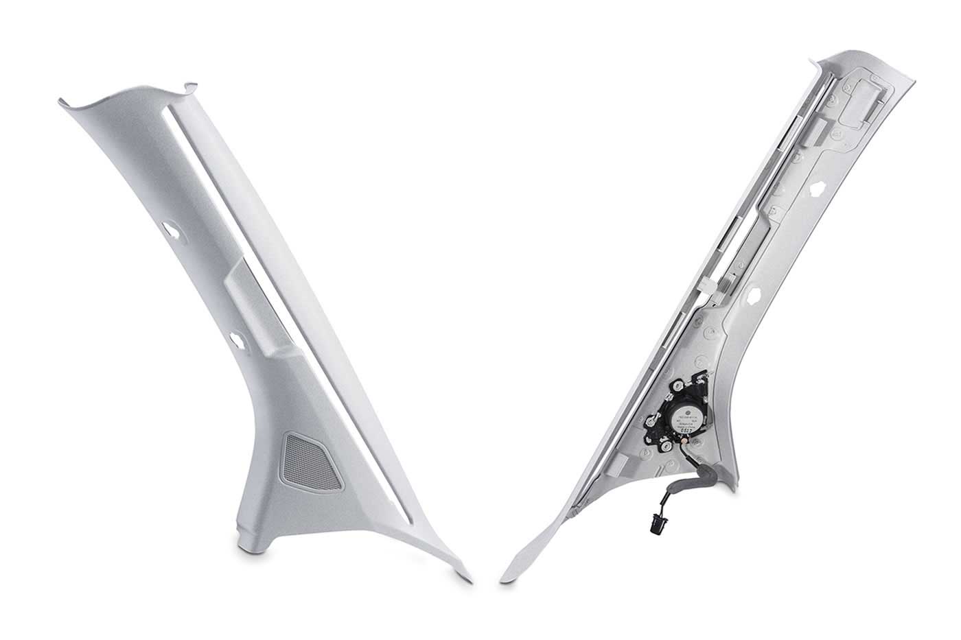 Interior A-pillar trim for mobile homes, combination of single-sheet and injection moulding