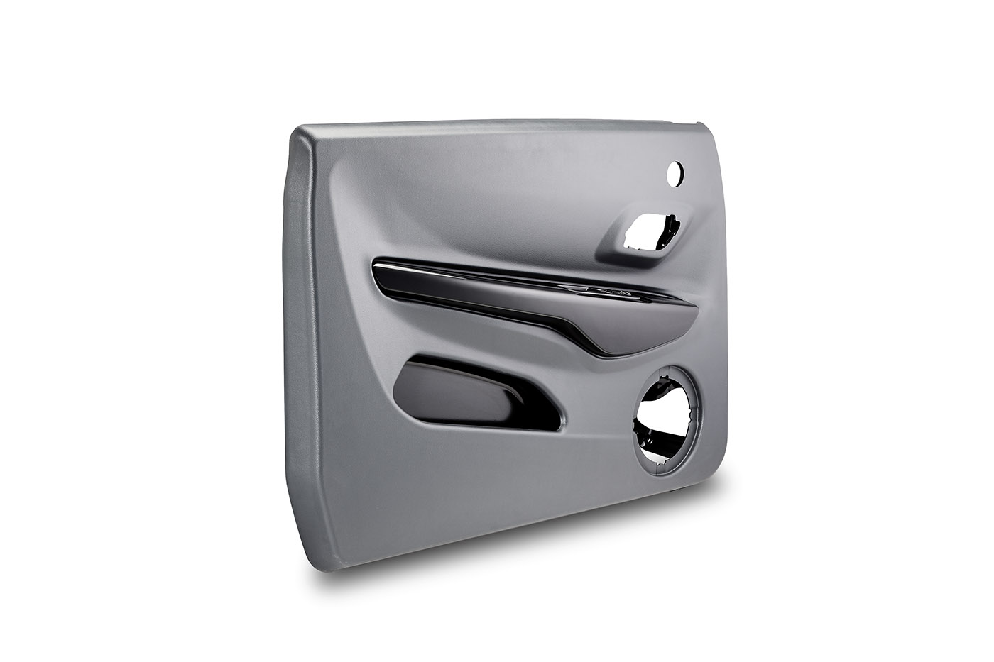Door trim for electric vehicle with attachment points on the rear side (front / rear)